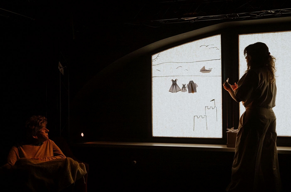 Izrādes galvenā varone ir Sarmīte, sirma kundze, kas mūža nogalē savas dienas vada vienatnē. Skatītājs tiek ieaicināts viņas pasaulē, kas nozīmē iejusties viņas dzīves ritmā, viņas pasaules uztverē un viņas atmiņās par kādreiz piedzīvoto un pārdzīvoto. Izrādē skan Staņislava Kuļikova speciāli tai komponēta mūzika, izrāde ir bez teksta, aktieru izteiksmes veids ir kustību valoda, zīmēšana un darbošanās ar origami tehnikā veidotām figūriņām.